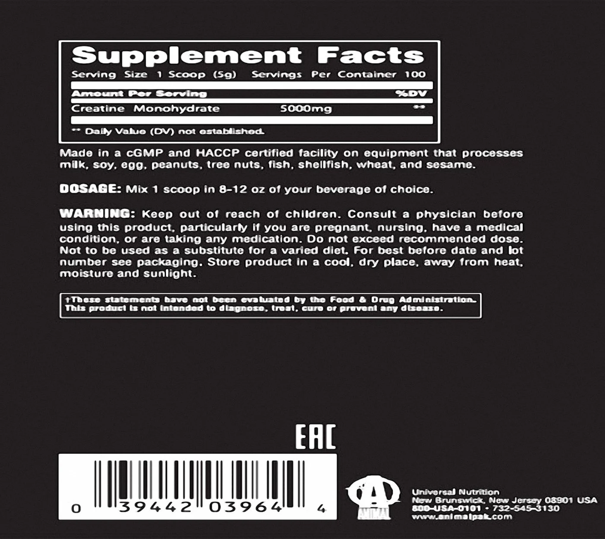 Universal Animal Creatine Monohydrate 500 gr