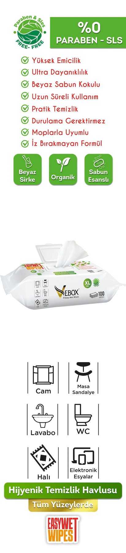 Vebox Easy Wet Wipes Yüzey Temizleme Havlusu 300 Yaprak
