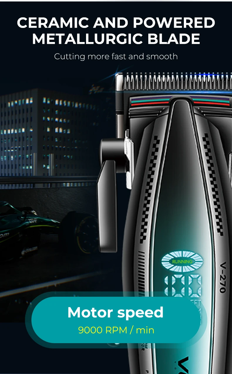 9000 RPM Yüksek Hızlı Motor: 9000 RPM (devir/dakika) güçlü motoru sayesinde en kalın saçları bile kolayca ve hızlı bir şekilde keser, pürüzsüz sonuçlar sunar.