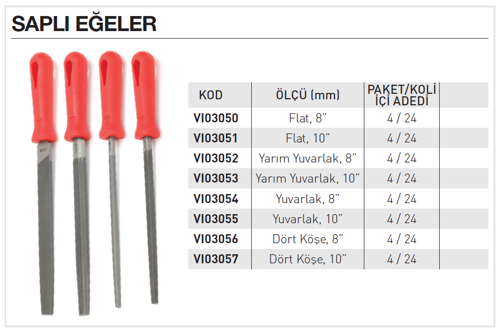Vinko VI03052 Yarım Yuvarlak 8’’ Saplı Eğe