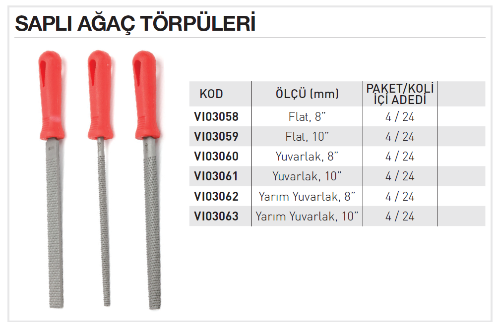 Vinko VI03061 10’’ Yuvarlak Saplı Ağaç Törpüsü