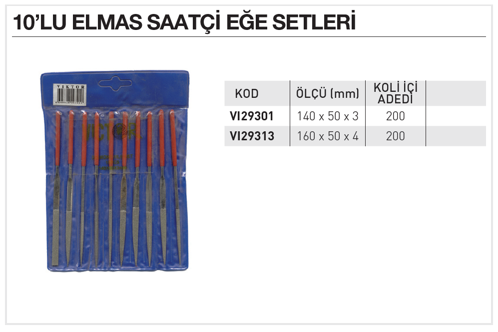 Vinko VI29301 140x50x3mm 10’lu Elmas Saatçi Eğe Seti