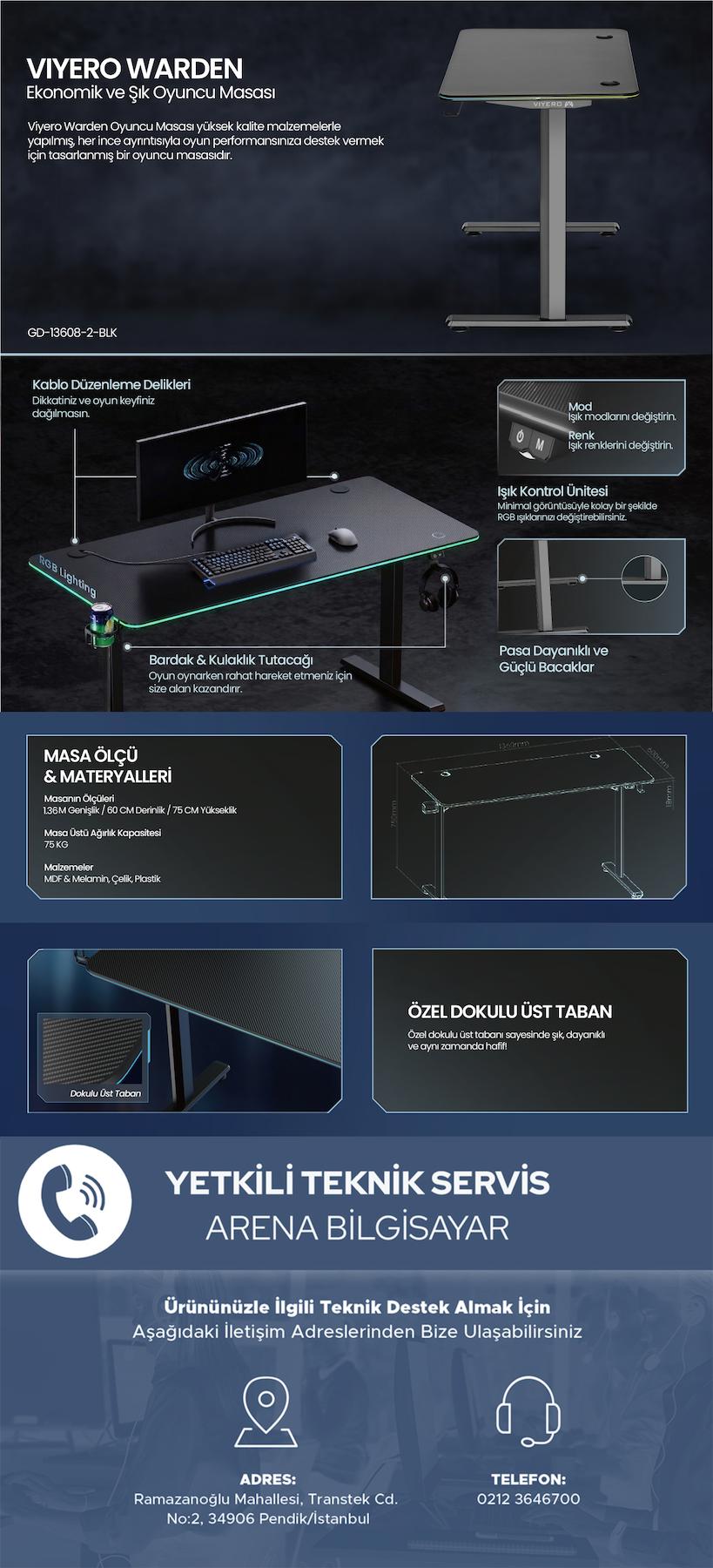Viyero Warden T-Ayak 360° Rgb Karbon-Fiber Oyuncu Masası 18MM 136X60X75CM GD-13608-2-BLK