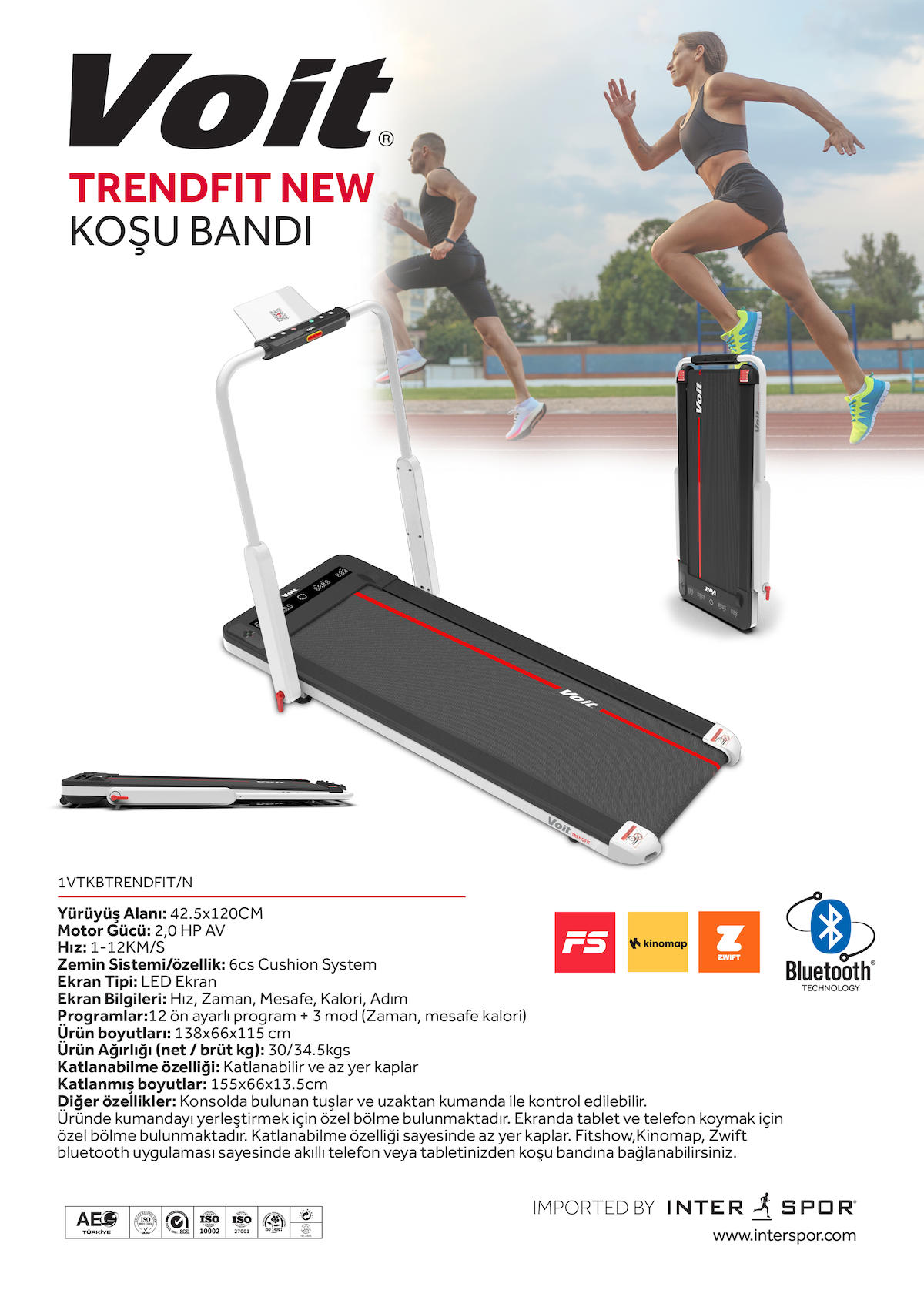 Voit Trendfit Koşu Bandı, Bluetooth, 12km Hız, Kumandalı, Sıvı Silikon Hediyeli, Adım Sayarlı, Programlı