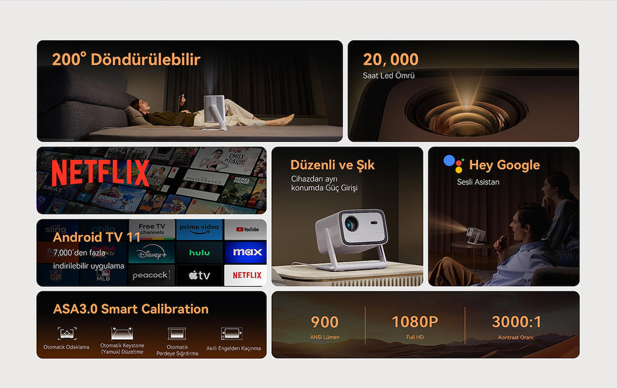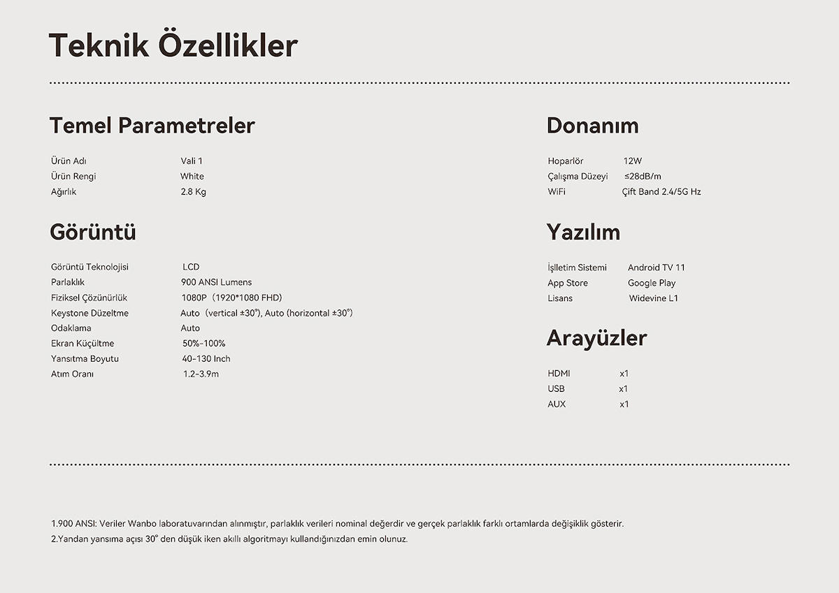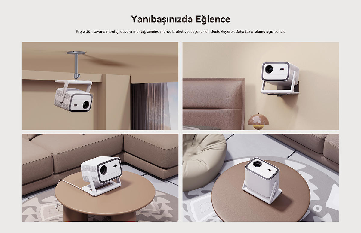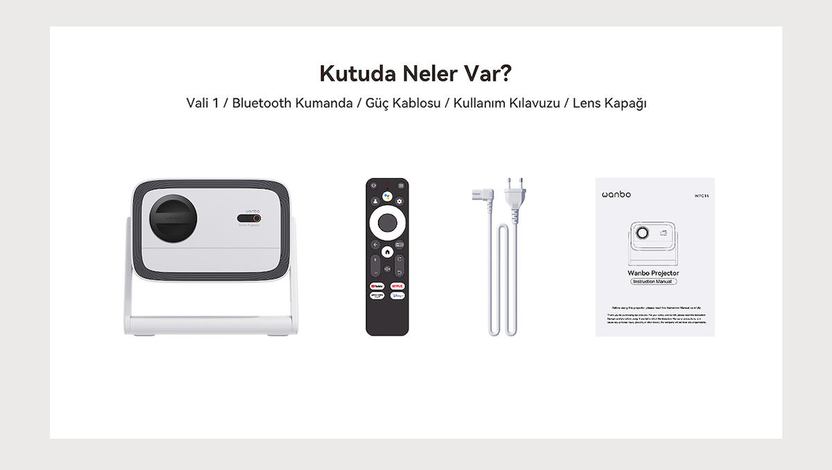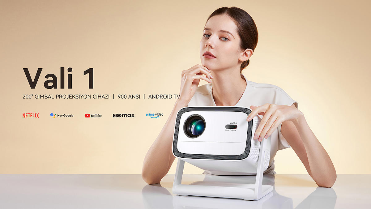 Wanbo Vali 1 Projeksiyon Cihazı | 900 ANSI Lümen, Android TV, Dahili Stand
