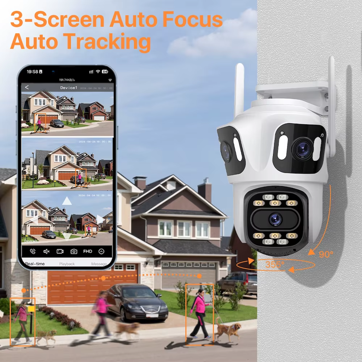 QASUL Wifi Kamera Wi-fi Üç Lens Üç Ekran Güvenlik PTZ Kamera Otomatik Takip Video Üç Lens Kablosuz Kamera