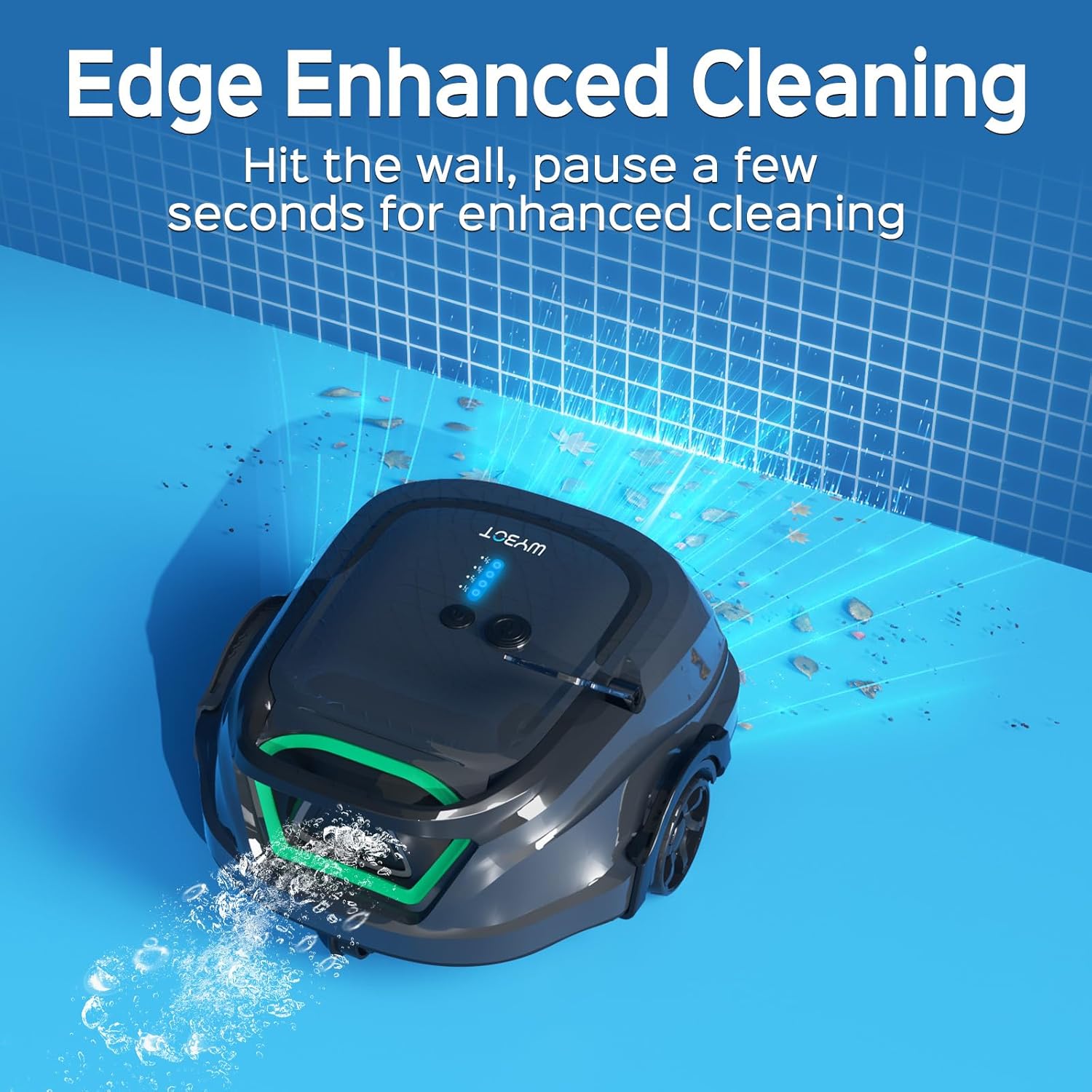 This innovative pool cleaner features patented edge-cleaning technology for effective cleaning of hard-to-reach areas. Its lightweight, compact design ensures easy portability. With a weekly cleaning cycle and 2-hour runtime, it keeps your pool spotless effortlessly.