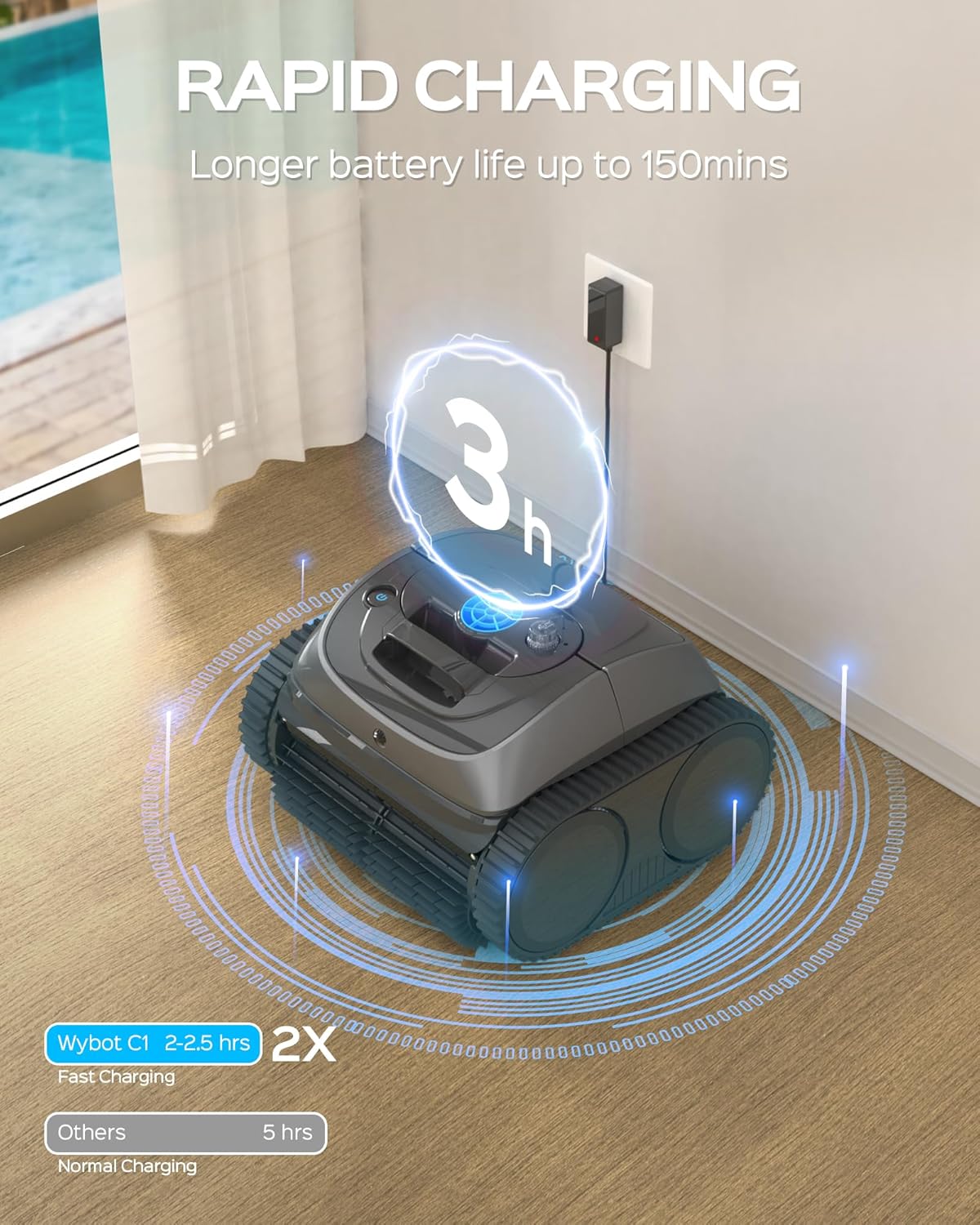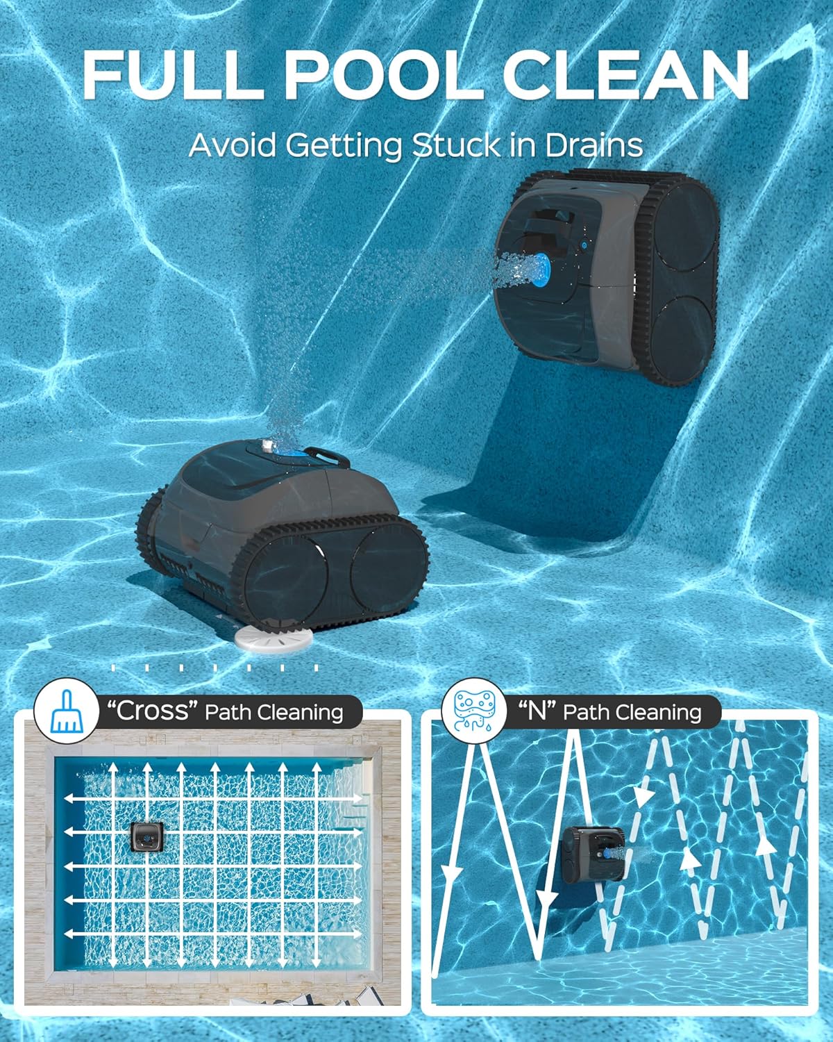 This advanced pool cleaner offers 7 customizable cleaning modes via an app for maximum adaptability. Its brushless motor enhances suction and scrubbing, while dual-level filtration efficiently removes ultrafine debris. High-precision sensors ensure thorough cleaning for all pool surfaces.