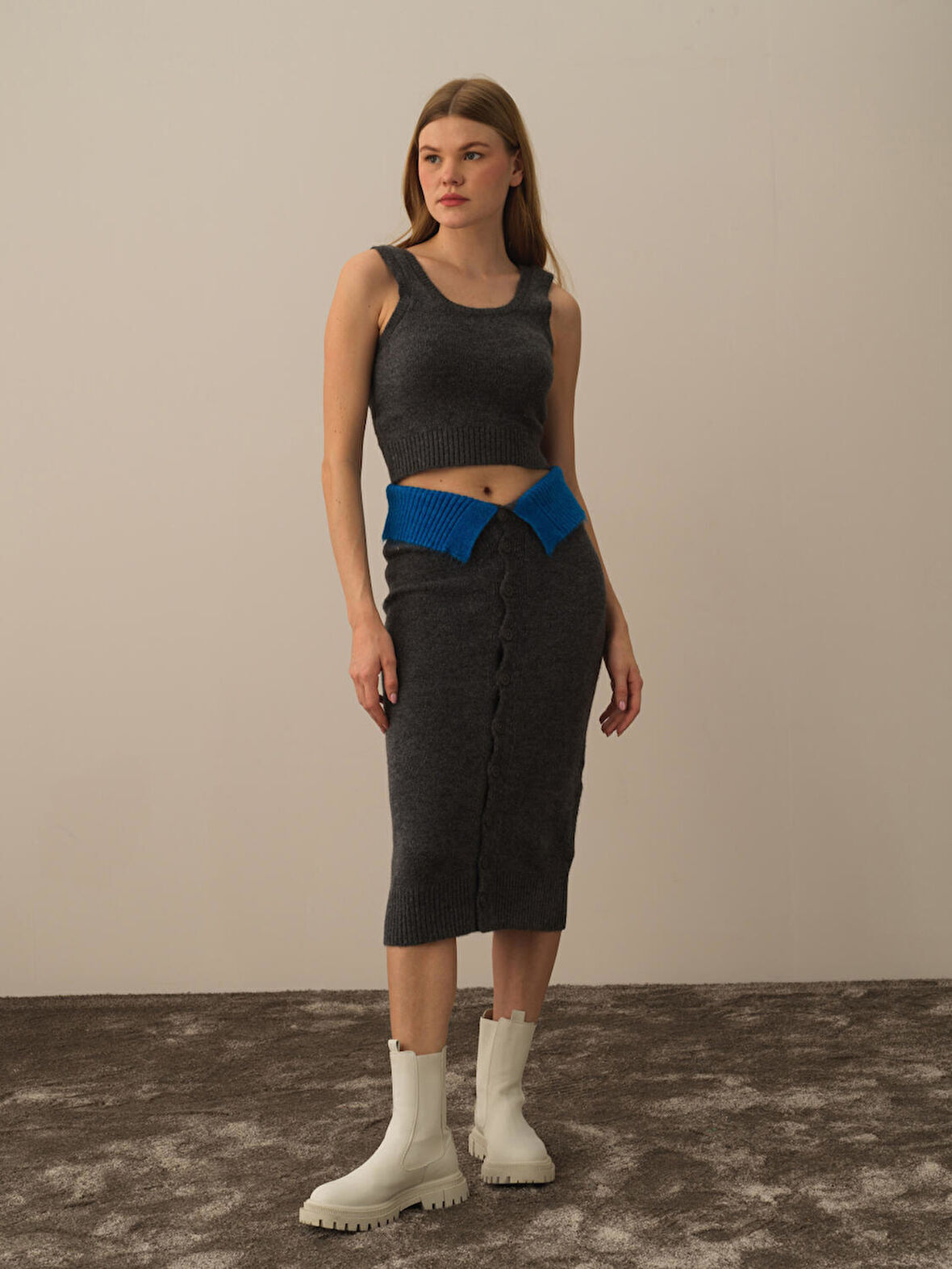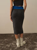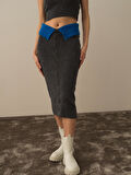 Xint Koyu Gri Lüks Pamuk Dokulu Oversize Etek