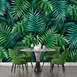 Yeşil Yaprak Desenli Sanatsal Duvar Kağıdı