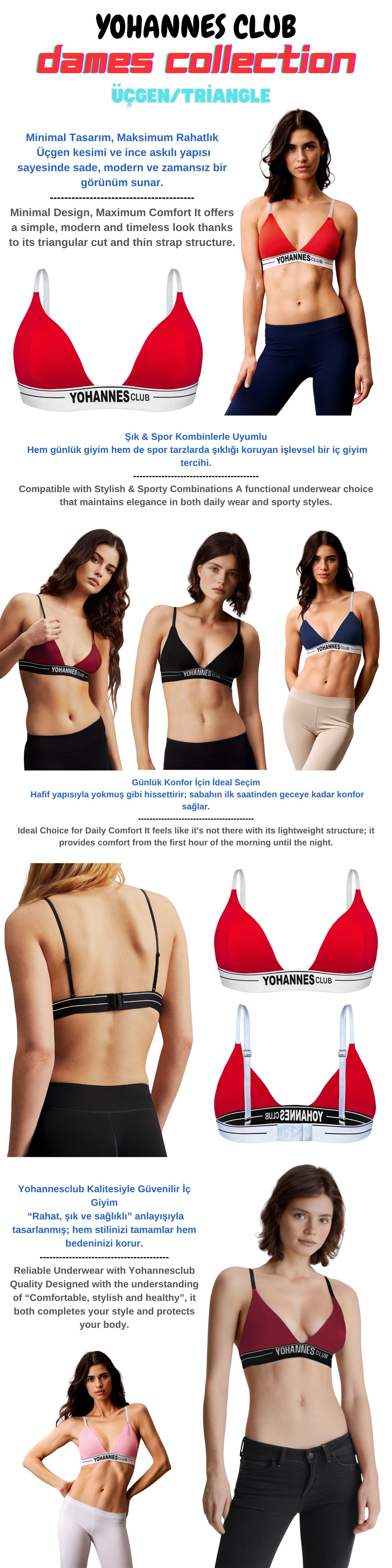 Klasikten renkliliğe uzanan geniş renk skalası ile Yohannesclub, üçgen sütyen koleksiyonunu tarzınıza uygun hale getiriyor.